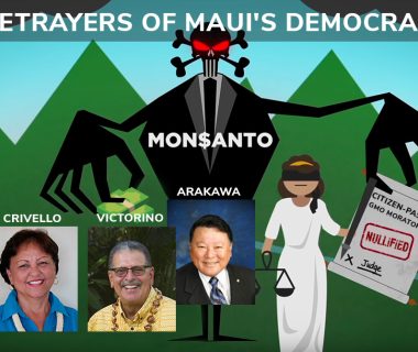 Betrayers of Maui Democracy Ask Voters to Re-Elect Them This November Arakawa, Victorino, Crivello, and Hokama Enabled Monsanto’s Historic Theft of Voter-Approved GMO Moratorium