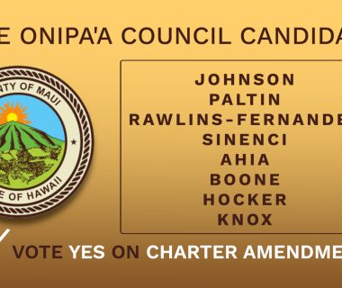 ‘Onipa’a 2022 Candidates Unite Against Pro-Development Millions Flooding Council Election Johnson, Paltin, Rawlins-Fernandez, Sinenci, Ahia, Boone, Hocker, and Knox fight to preserve Maui’s five person progressive majority