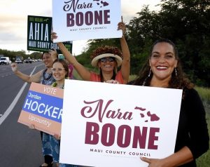 Nara Boone also promises as a County Councilor that she will focus on more affordable housing opportunities. “We have to get this under control,” she told The Maui News. “Too many people are moving away because they don’t have a place to live.” She supports restricting short-term rentals in the vicinity of schools to help local families live in closer proximity to school campuses. She also supports implementing subsidized housing for teachers, nurses and other essential workers.