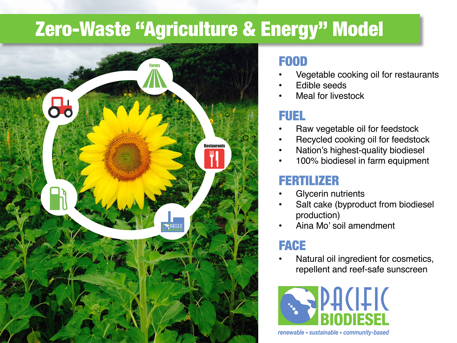 Zero Waste Sunflower Biodiesel Kick Starts Maui’s Agricultural Transformation Sustainable Pesticide-Free Farming on 115 Acres of Former Sugar Plantation Land Sets Maui’s Landscape and Economy Ablaze With Stunning New Possibilities